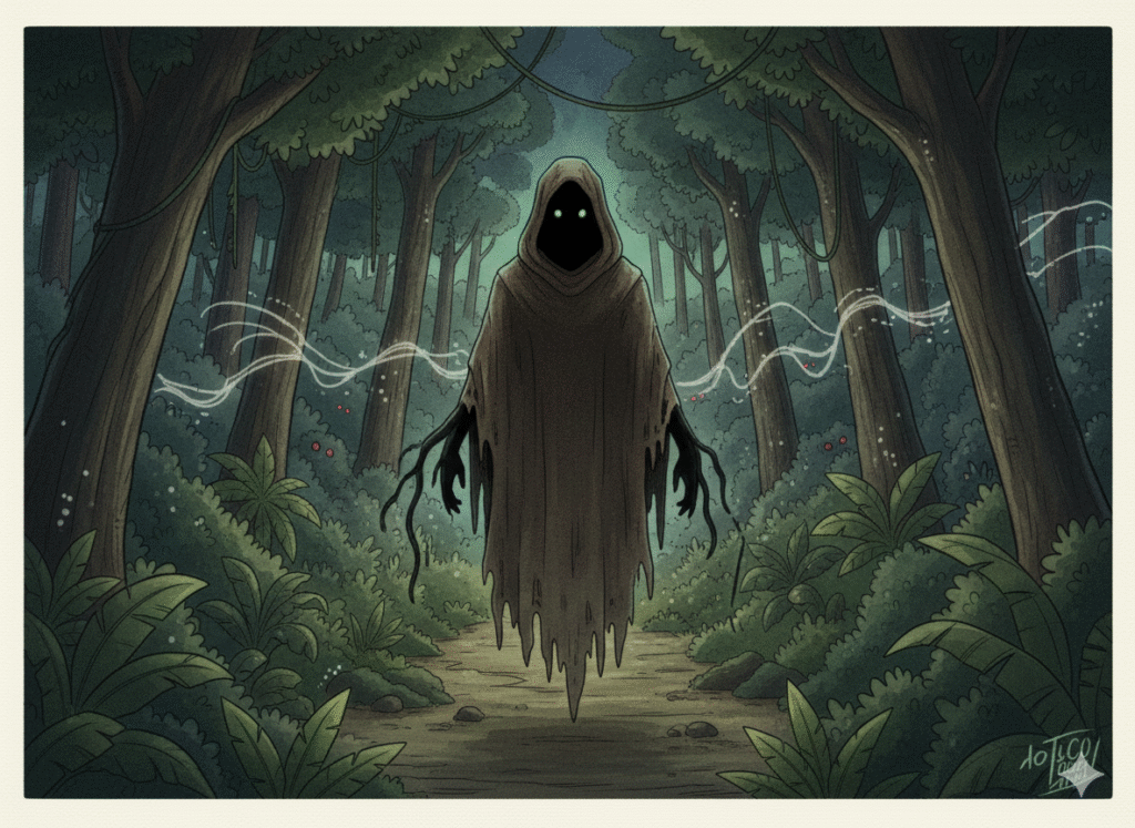 OJO: Cuando voy a la chacra de noche con mi abuelo, él siempre lleva una cruz de palo y reza para que el Tunche no nos siga. Me da mucho miedo, porque dicen que si te silba en la oreja te duermes para siempre. ¡Yo le tengo más miedo al Tunche que a la oscuridad!